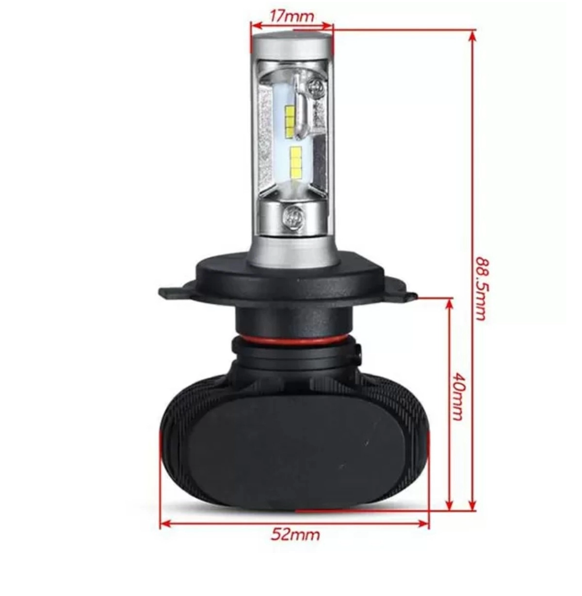 Характеристики: Цоколь: H4 Модель: N1 Тип світлодіодного елемента: CSP Chip Кількість світлодіодів: 12pcs Система охолодження: IP65 Температура світіння: 6000К Світловий потік: 4000 Lm Потужність: 36Вт Термін служби: 30000 годин Кут пучка світла: 360 Робоча температура: від – 40 до 8 особливості: Висока інтенсивність світлового потоку; Ефективний алюмінієвий радіатор; Автомобільні діоди Seoul CSP; Компактні розміри для полегшення установки; Вбудований в лампу контролер.