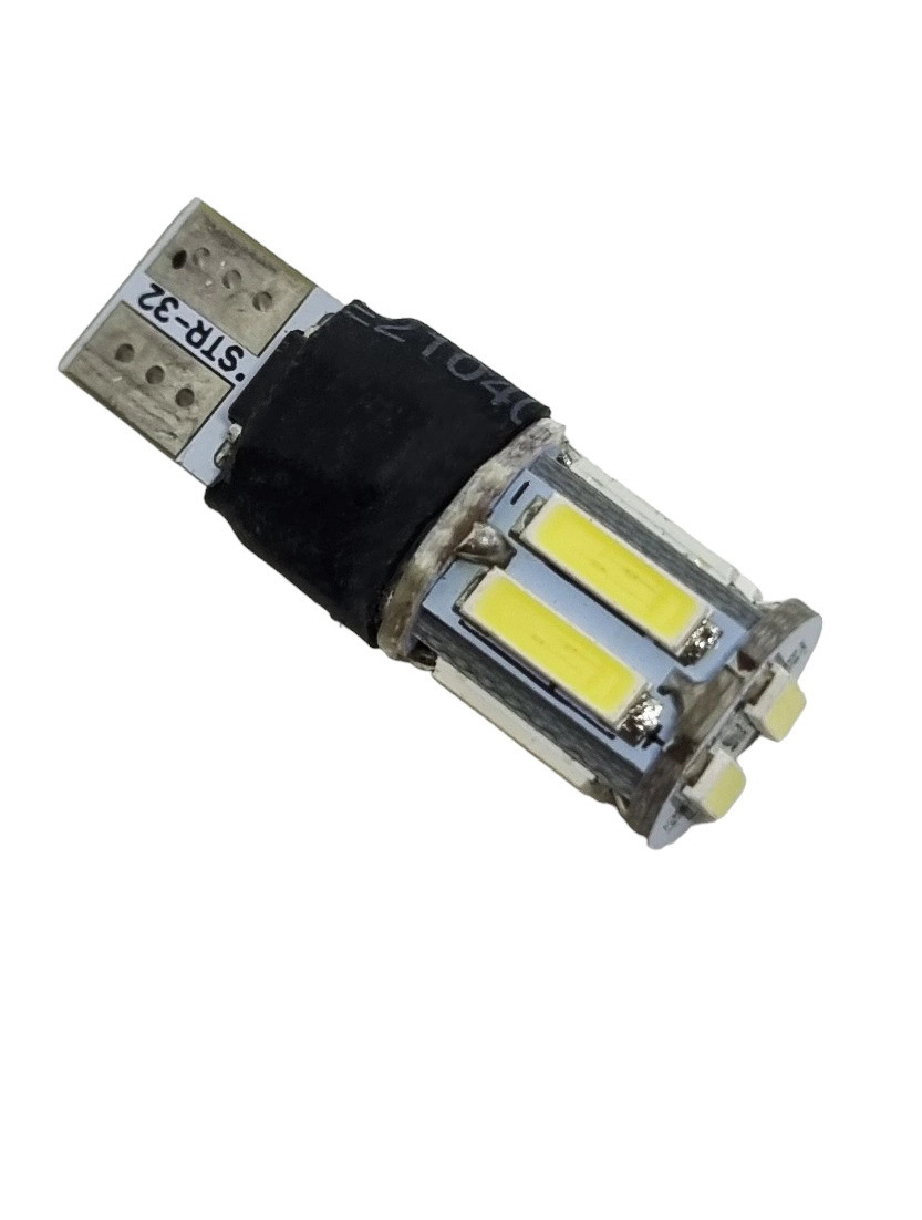 Характеристика: Цоколь: Т10 (W5W) Тип світлодіода: 7020 Кількість світлодіодів: 10 Колір світіння: Білий Напруга живлення: 12V Колірна температура: 6000К Особливість: стробоскоп