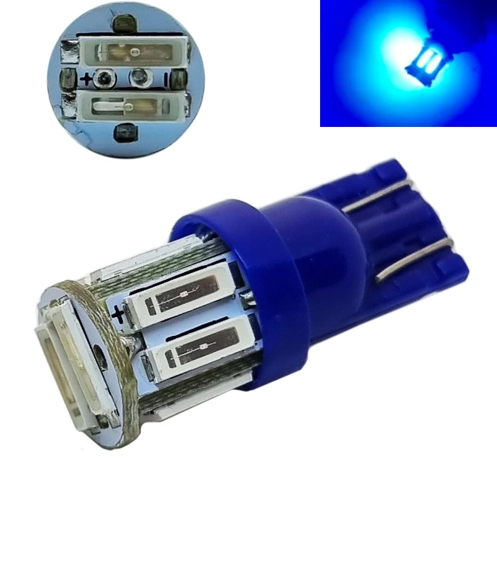 Світлодіодна лампа Т10 (W5W) 10SMD 7020 canbus 12V Синє світло