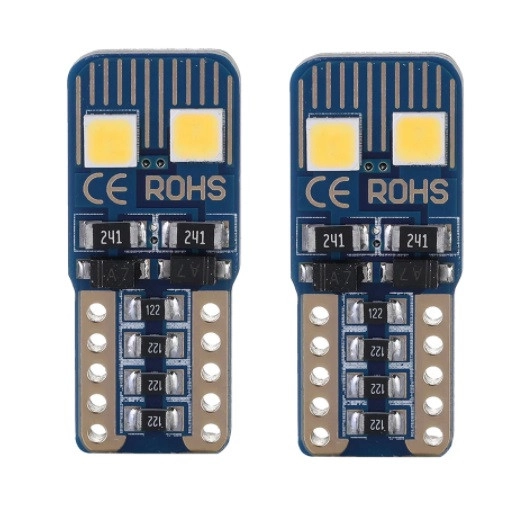 Характеристика: Цоколь: Т10 (W5W) Тип світлодіода: 3030 Кількість діодів: 4 Колір світіння: Білий Напруга живлення: 12V Світловий потік: 120Lm Особливості: з обманкою