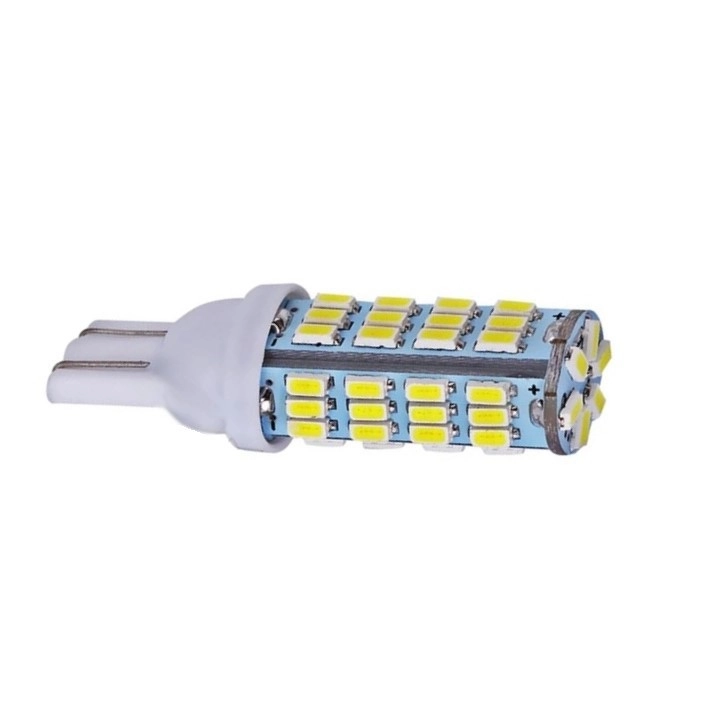 Характеристика: Цоколь: Т10 (W5W) Тип світлодіода: 3014 Кількість діодів: 54 Колір світіння: Білий Напруга живлення: 12V Світловий потік: 630 Lm