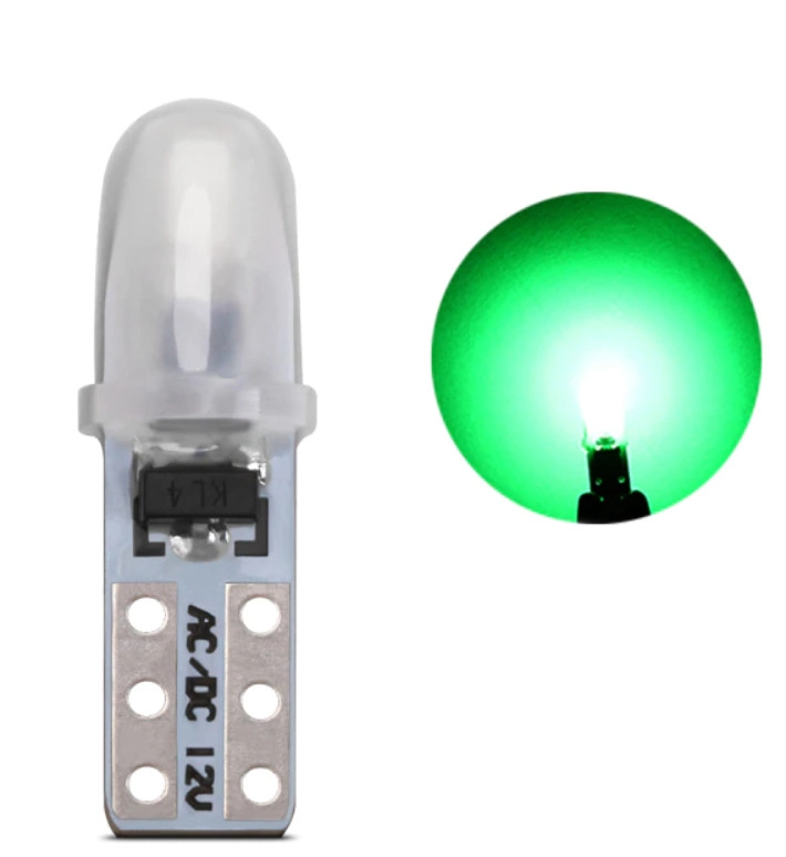 Характеристика: Цоколь: Т5 Тип діода: 3014 Кількість діодів: 2 Колір світіння: Зелений Напруга живлення: 12V Світловий потік: 40Lm