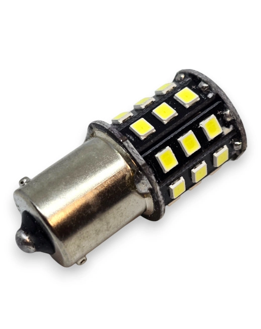 Характеристики: Цоколь: 1156 (BA15s P21W) Тип діода: 2835 Кількість діодів: 33 Колір світіння: Білий Напруга живлення: 24V Світловий потік: 660Lm Особливості: зі зміщеним кріпленням