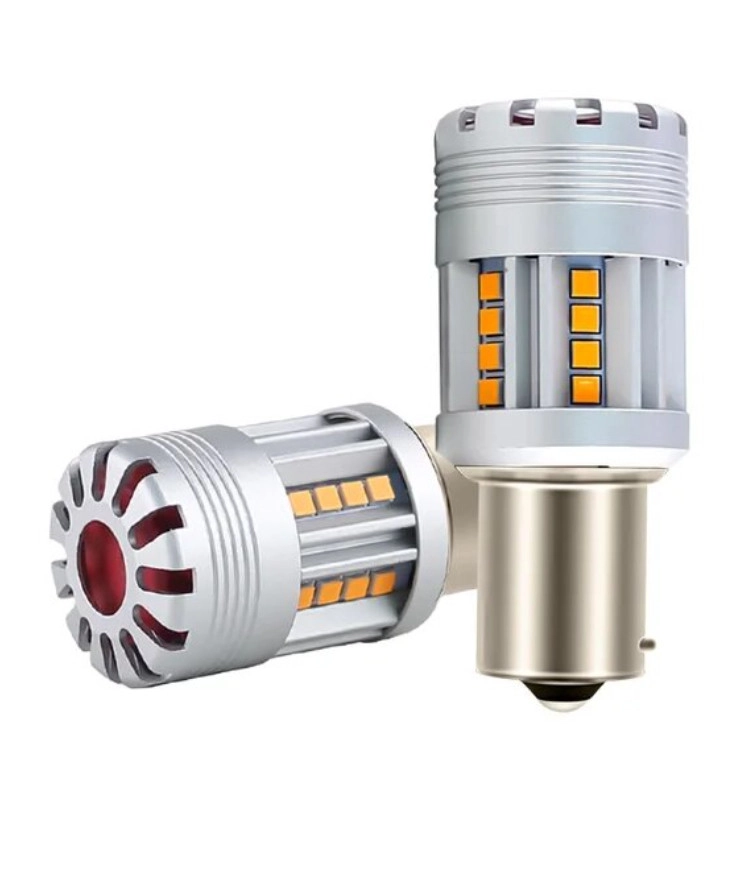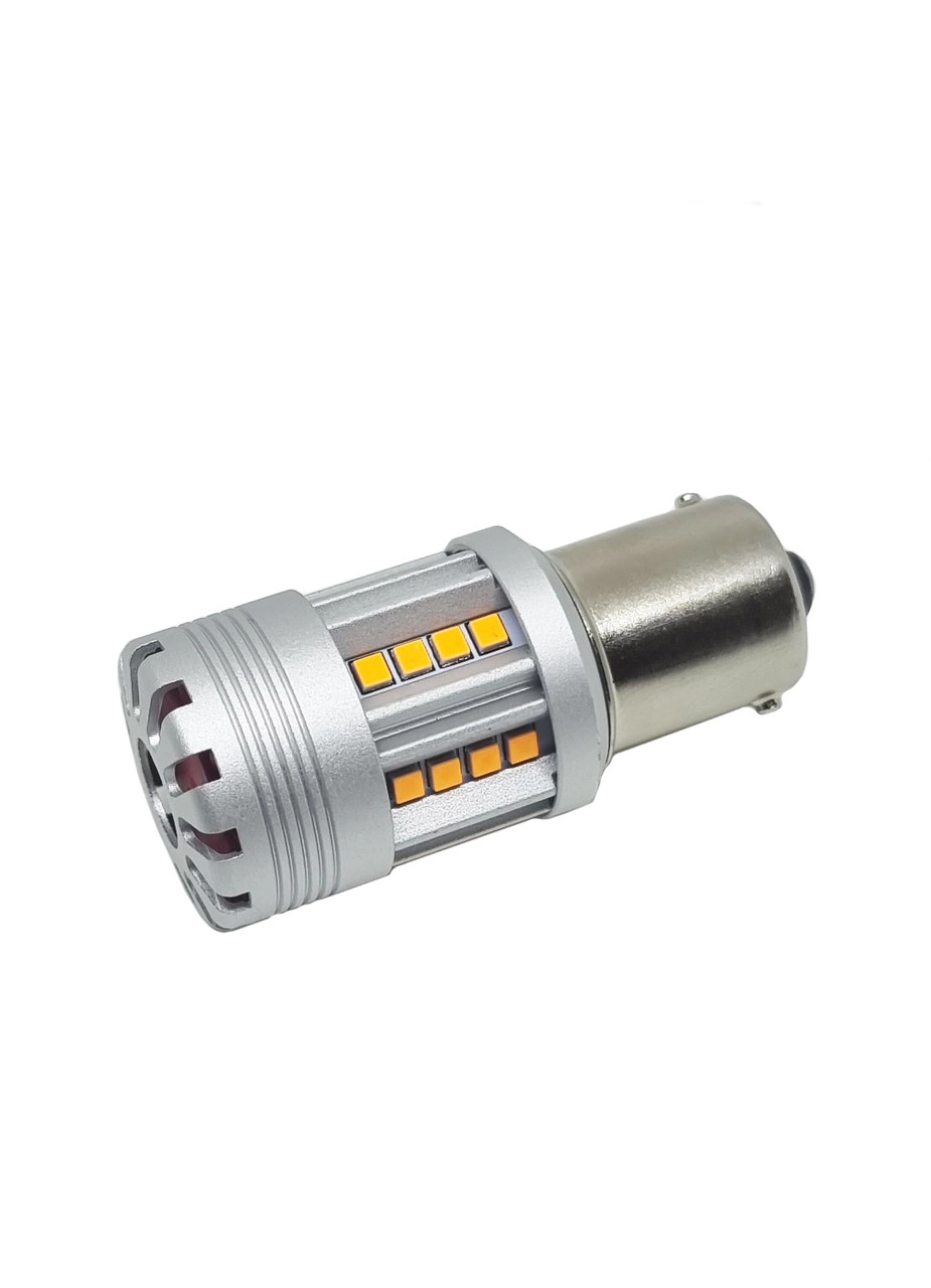 Світлодіодна лампа з цоколем 1156 BA15s P21W 24 SMD 2020 10-30V 24W 2800 Lm з обманкою Жовте світло