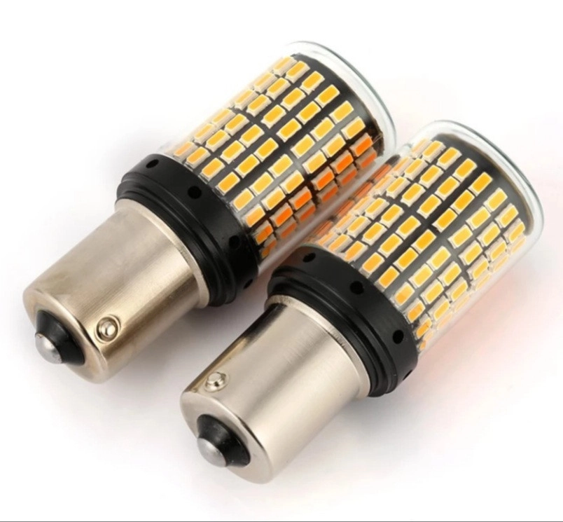 Світлодіодна лампа з цоколем 1156 BAU15s PY21W 144 SMD 3014 12V Жовтий зі зміщенням