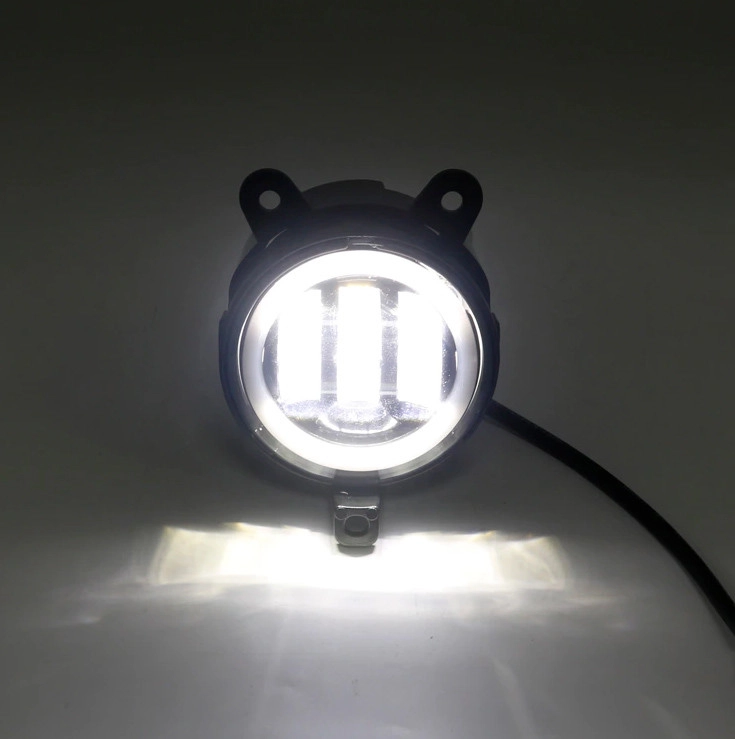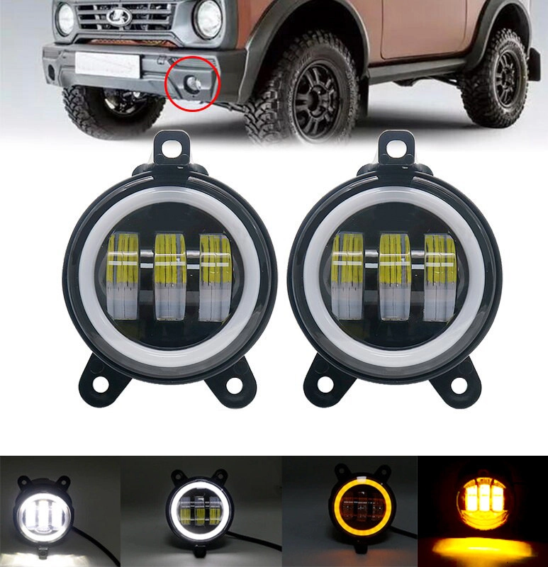 Протитуманні фари з чіткою СТГ. За рахунок лінз дуже добре освітлює. Потужні штатні світлодіодні лінзовані LED протитуманні фари в бампер рекомендовані для автомобілів: ВАЗ Лада Пріора 2170, 2171, 2172, 2173, Газель Бізнес Next, Нива Chevrolet 2009. Фари мають чіткий світло-тіньовий кордон і не сліплять зустрічних водіїв, що дозволяє використовувати їх на додаток до ближнього світла і як протитуманні фари. Led фара не боїться вібрацій, пило- та водонепроникна, ударостійка, клас захисту IP67. За допомогою кріплення, що йде в комплекті, Ви зможете надійно закріпити та відрегулювати фару. Характеристики: Потужність: 30W Кількість світлодіодів: 3 Розміри: Діаметр 90 мм Колірна температура: 6000К Матеріал: Литий алюміній та пластик Робочий діапазон напруги: 10 – 30V Особливості: Режим габарит та поворот. Ангельські очі світяться білим і жовтим. Основне світло забезпечується трьома лінзами, які також світять білим або жовтим.