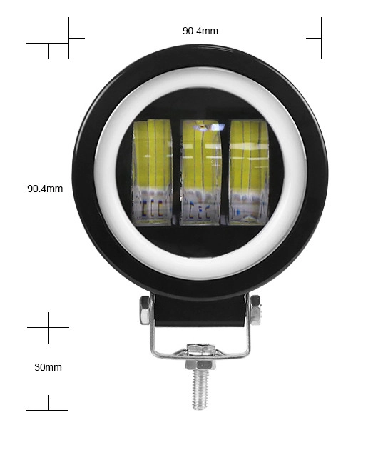 Світлодіодні фари встановлюються на різні типи транспортних засобів: позашляховики, вантажівки, спецтехніку, мотоцикли, квадроцикли, всюдиходи, комбайни, трактори, катери, човни, яхти, самоскиди для шахтних та кар’єрних робіт. Фари мають чіткий світло-тіньовий кордон і не сліплять зустрічних водіїв, що дозволяє використовувати їх на додаток до ближнього світла і як протитуманні фари і фари основного світла на спецтехніці та мототехніці. Корпус виконаний з високоякісного алюмінієвого сплаву під високим тиском, пофарбований порошковою фарбою, він виконує роль пасивного радіатора для відведення тепла від чіпів. Led фара не боїться вібрацій, пилу та водонепроникна, ударостійка, клас захисту IP67. За допомогою кріплення, що йде в комплекті, Ви зможете надійно закріпити та відрегулювати фару. ХАРАКТЕРИСТИКИ Тип фари-дод. ближній, ДХО. Робоче світло протитуманне світло Потужність-30Вт. (1 шт.) Тип світлодіода – Cree×3шт. Вологозахист-IP 67 вологозахищений Напруга живлення – 12-36в. Колірна температура – ​​5000К (білий) Розмір коло – 94мм.+30мм кріплення Матеріал: алюмінієвий сплав Особливості: з жовтим ангельським оком