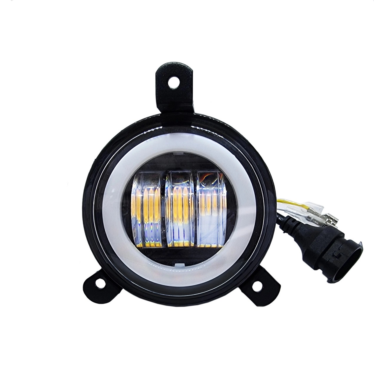 Протитуманні фари з чіткою СТМ. За рахунок лінз дуже добре висвітлює. Потужні штатні світлодіодні лінзованной LED протитуманні фари в бампер рекомендовані для автомобілів: ВАЗ Лада Пріора 2170, 2171, 2172, 2173, Газель Бізнес Next, Нива Chevrolet 2009. Фари мають чітку світло-тіньову межу і не сліплять зустрічних водіїв, що дозволяє використовувати їх на додаток до ближнього світла і в якості протитуманних фар. Led фара не боїться вібрацій, пило-та водонепроникна, ударостійка, клас захисту IP67. За допомогою кріплення, що йде в комплекті, Ви зможете надійно закріпити і відрегулювати фару. Характеристики: Споживана потужність: 30W Кількість світлодіодів: 3 Матеріал корпусу: литий алюміній Розміри: Діаметр 90 мм Колірна температура: 6000К Робочий діапазон напруги: 10 – 30V Особливості: З ангельськими глазками (Габарит, поворот)