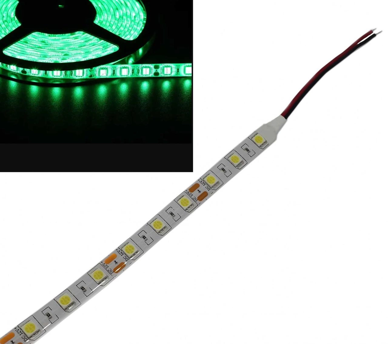 Характеристика: Довжина: 5 метрів Тип діода: 5050 Кількість світлодіодів: 60 SMD на метр Потужність: 14,4W / M Напруга: 12V Колір світіння: Зелений