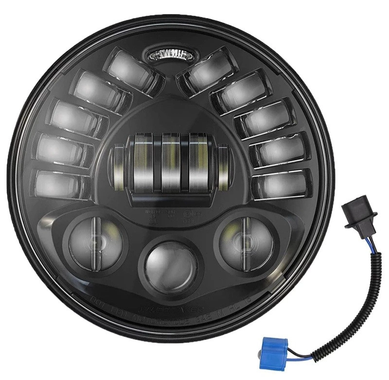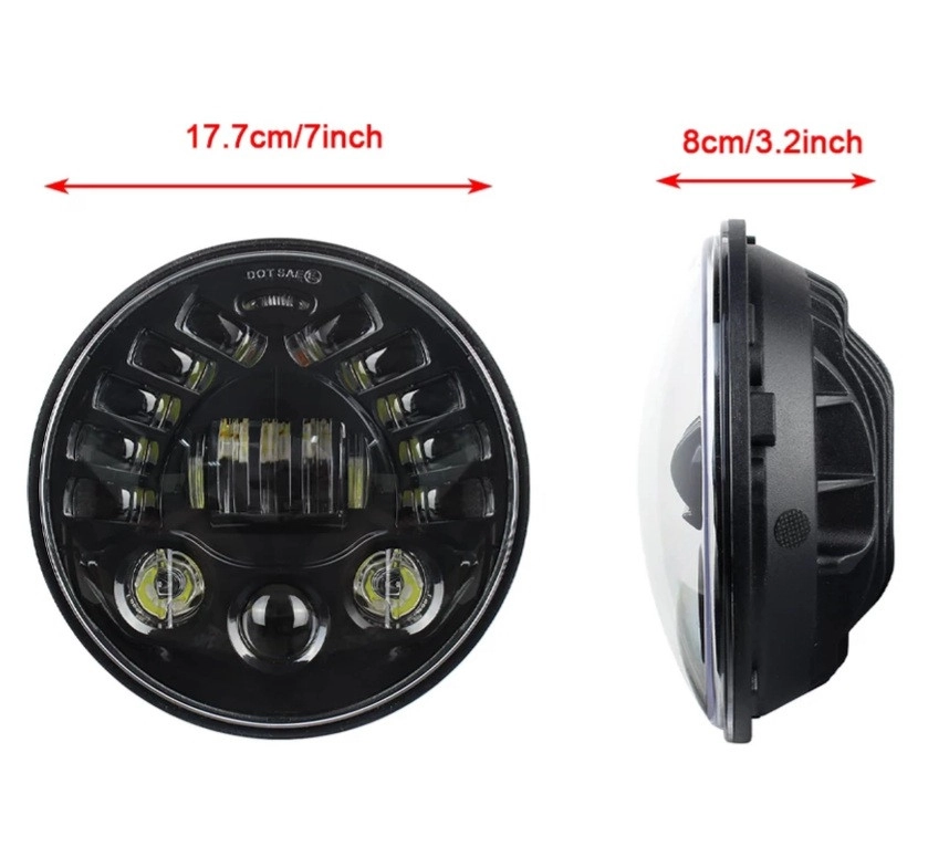 Дуже яскрава світлодіодна фара розміром 7 дюймів з правим і лівим покажчиком повороту. Відрізняється універсальним дизайном, стійка до ультрафіолетового випромінювання, має інноваційний 4D Круглий + d-подібний об’єктив проектора. Оптимізований дизайн радіатора. Характеристики: Напруга: 12-30 В постійного струму (12 В, 24 В) Струм: 3A @ 12 В; 1.5A 24 В потужність: -30 Вт Світлодіодний прожектор для ближнього світла Світлодіодний прожектор 70 Вт для дальнього світла Люмени: близько 3600 люменів ближнього світла близько 4800 люменів дальнього світла Світлодіодний Кількість: 4 світлодіодний лампи Колірна температура: 6500K-7000K Робоча температура: -40 ° C- 85 ° C Ціна вказана за комплект.
