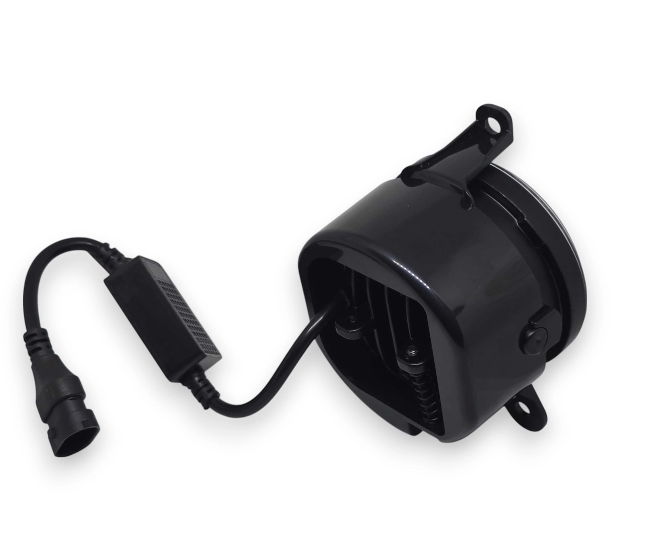 Характеристики: Потужність: 70W Кількість світлодіодів: 7 Розміри: Діаметр 90 мм Матеріал: пластик + алюминий Робочий діапазон напруги: 9 – 32V Колір світіння: Білий