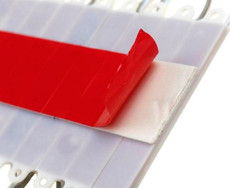 Світлодіодний модуль – це пластикова плата, із встановленими на ній діодами, яка монтується за допомогою двостороннього скотчу або індивідуального кріплення. Світлодіодна плата та контактні дроти надійно загерметизовані у корпусі модуля. Характеристики: Колір світіння: червоний Тип світлодіода: 5630 Кількість діодів: 3 Напруга: 12V Ступінь захисту: IP67 Кут розсіювання: 120° Розміри: 75мм×12мм×5мм Світлодіодний модуль використовується для: – автотюнінгу; – створення зовнішньої реклами; – підсвічування фасадів меблів та інших предметів інтер’єру; – промислового освітлення. Основною його перевагою є економія електроенергії за рахунок невеликої потребояемой потужності. А доступна вартість і простота монтажу забезпечує широкий спектр використання. Завдяки надійної герметичності його можна використовувати в приміщеннях з високою вологість. Модулі між собою зібрані послідовно в єдину герлянду на проводах, що дозволяє підсвічувати конструкцію будь-якого розміру.