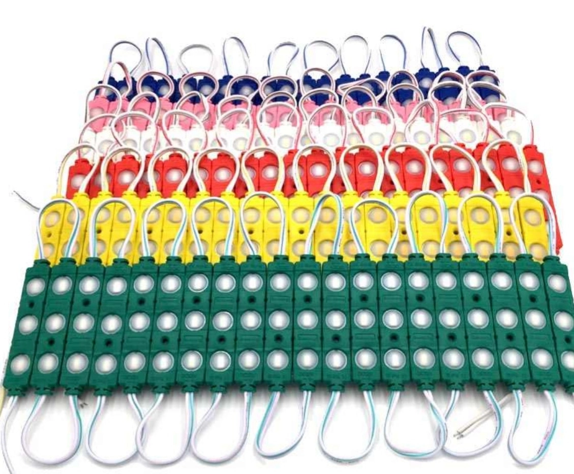 Цей світлодіодний модуль — це пластикова плата, з встановленими на ній трьома діодами типу 5630 і лінзою, яка монтується за допомогою двостороннього скотчу або індивідуального кріплення. Світлодіодна плата та контактні дроти надійно загерметизовані в корпусі модуля. Характеристики: Колір світіння: зелений Кількість діодів: 3 Тип светрдиода: 5630 Потужність: 1,5Вт Напруга: 12V Ступінь захисту: Ip67 Розміри: 76мм×15мм Світлодіодний модуль використовується для: – автотюнінгу; – створення зовнішньої реклами; – підсвічування фасадів меблів та інших предметів інтер’єру; – промислового освітлення. Основною його перевагою є економія електроенергії завдяки невеликій споживаній потужності. А доступна вартість і простота монтажу забезпечує широкий спектр застосування. Завдяки надійній герметичності його можна використовувати в приміщеннях із високою вологістю. Модулі між собою зібрані послідовно в єдину герлянду на дротах, що дає змогу підсвічувати конструкцію будь-якого розміру.