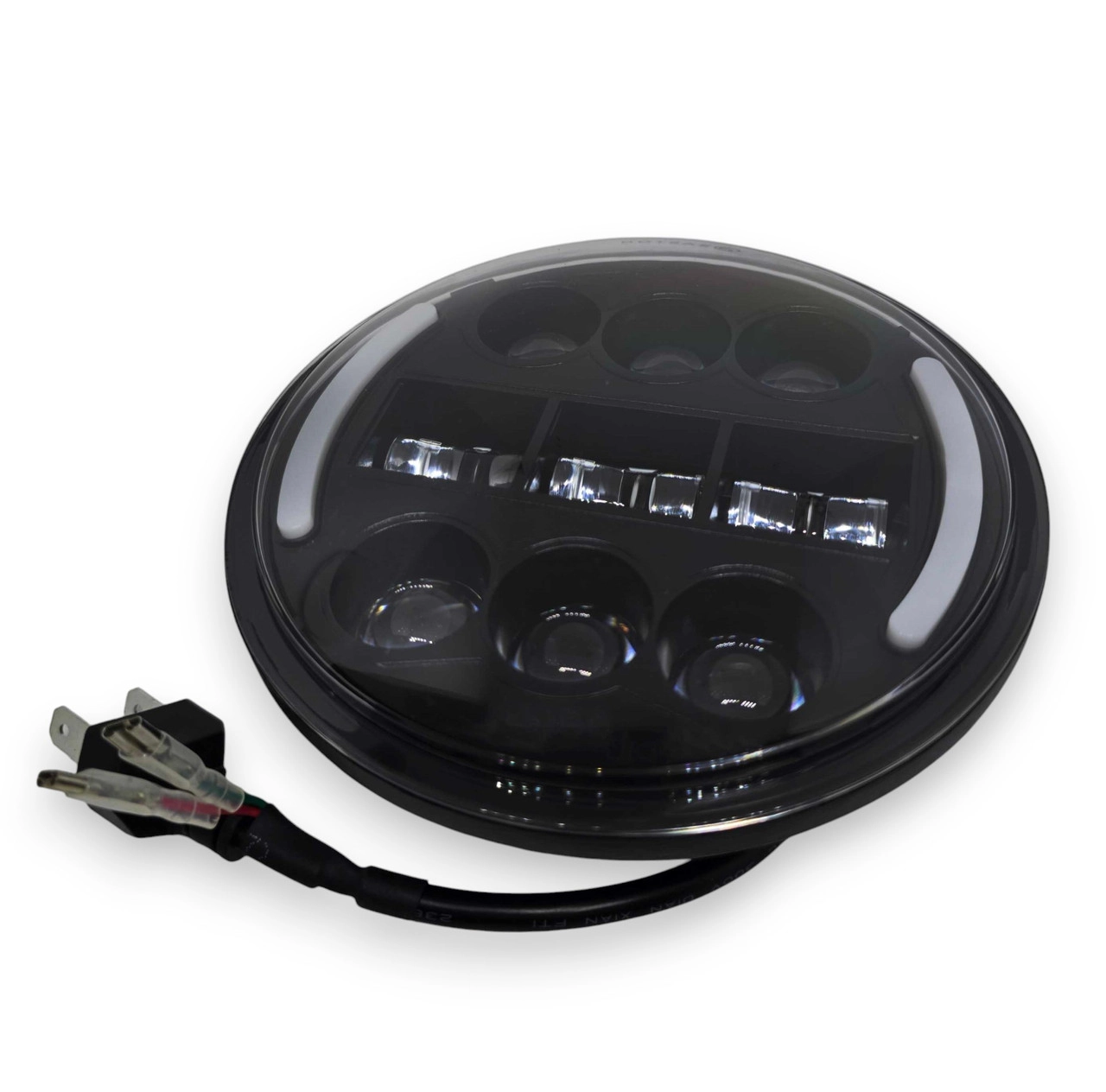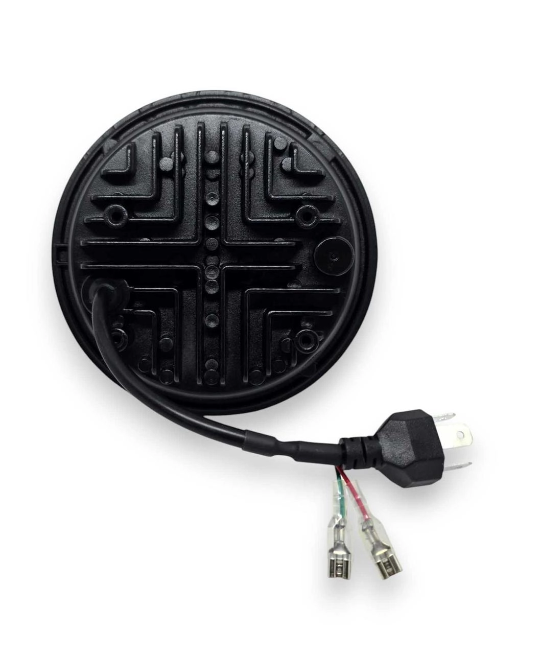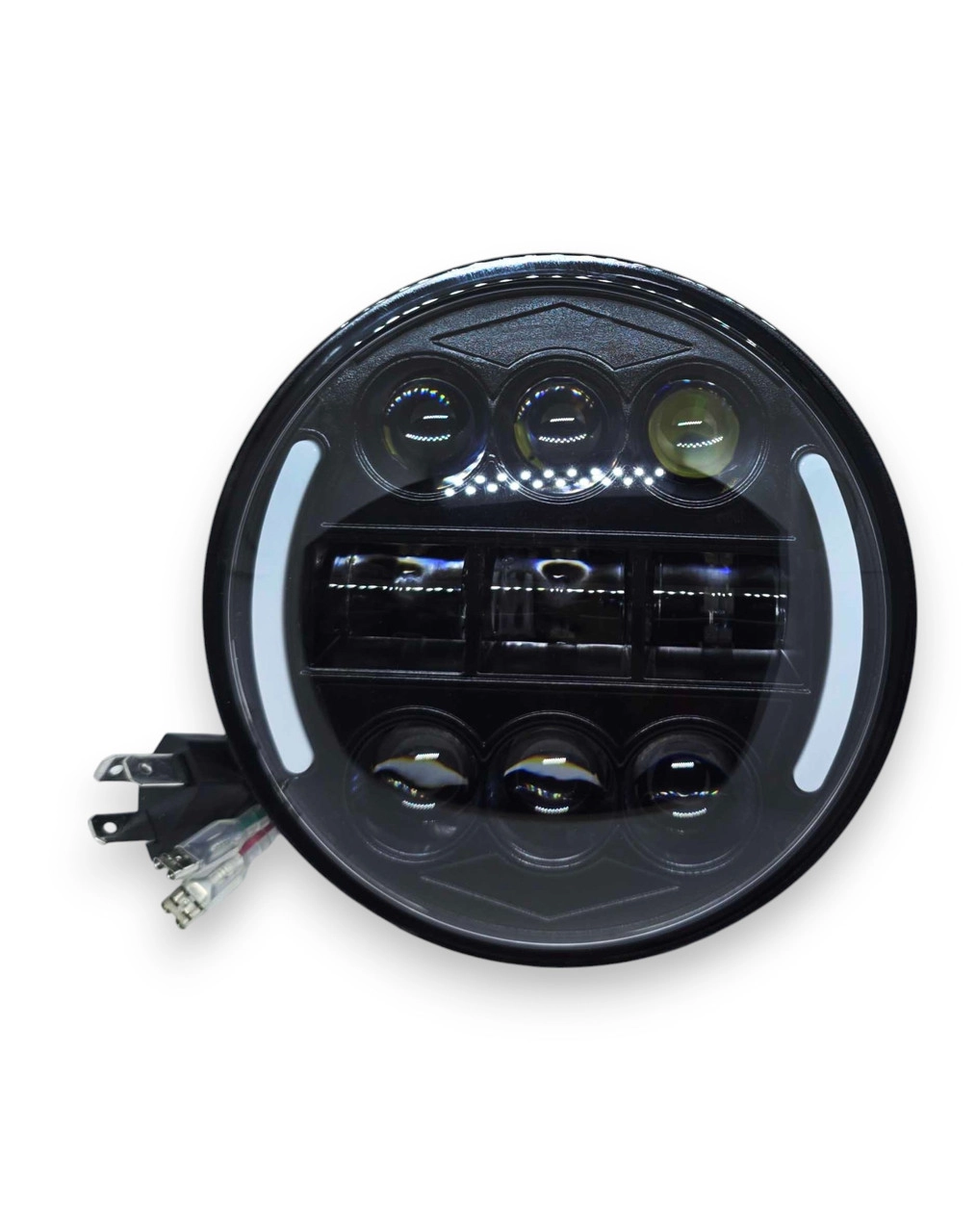Фара головного світла світлодіодна LED оптика ВАЗ 2103, 2106 з денними ходовими вогнями (ДХО) та лінза з роздільними покажчиками повороту (поворотниками), Ø 5.75 дюйма (146 мм), 12/24 В, чорна. Харакеристика: Розмір: 5,75 дюймів Напруга: 12-24V Світловий потік: 5000 Lm ближнє світло, 9400 Lm дальнє світло Потужність фари: 75W Температура свічення: 6000K Ціна за 1 шт.