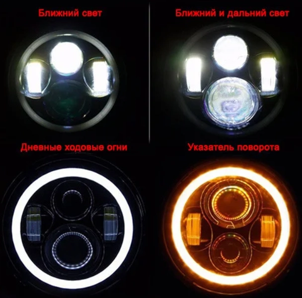 Світлодіодні 7-ми дюймові фари головного світла — це відмінний вибір для Вашого автомобіля або мотоцикла. Вони перевершують по більшості характеристик ксенонові фари, а тим більше галогенні. Вони відрізняються сучасним зовнішнім виглядом, потужним світловим потоком, якістю збірки і довговічністю. Світлодіодні фари головного світла, з функцією габаритних вогнів (ангельських глазок) і покажчиків повороту. Особливості: – Відмінне розподіл світла, гарний малюнок світіння, чітка верхня межа – Потужний світловий потік – Габаритні вогні “ангельські глазки” і покажчик повороту – Доступна ціна Можлива продаж 1 шт Характеристики: Потужність: 60 Вт Вхідна напруга: DC 10-30 В Матеріал лампи: pc + PMMA Колір температури: білий До 6000-6500 До (білий) Люмен: 3200 лм ближнє світло, 5000 лм дальнє світло Сертифікати відповідності: DOT, SAE, CE, RoHs Ціна за комплект: 2 фари Універсальні фари світлодіодні LED 7 дюймів (ангельські глазки) підходять для: УАЗ (UAZ): 452 (буханка), 469, Хантер (Hunter) ВАЗ 2101 (копійка), 2102, 2121 (Нива) ЗІЛ: 130-133 ГА3: 24 (Волга), 53, 66 Камаз Daihatsu: Charade I (G10), Taft/Wildcat, Rocky/Rugger (F70, F75) Ford: Escort (AFH, ATH), Transit I-II (до 1984) Kia: Retona Honda: Ballade I (Sl), Civic (WC, SB, SS) Hummer: H1, H2, H3 Jeep: Wrangler, Rubicon, Willys Land Rover: Defender Mazda: 323 I (Fa), MX-5 I (Na), Rx 7 I (Sa) Mercedes G-Klasse Gelandewagen (Гелендваген, Гелик, Кубик) Mitsubishi: Lancer/Celeste (GL, NZ, EX, A70), Pajero I Nissan Datsun): Patrol (Y60, Y61), 100a, 120, 240, 280ZX, 280ZXT, HGS130, Cherry (F10), Sunny (140y, 150) та інші Porsche: 914 Ssangyong: Korando I-II Suzuki: Alto I (SS30, SS40), Carry (FB/FBD, L:20-30;50-60, ST:10-40;90, DA/DE51 ), LJ80, Jimny/Samurai (LJ/SJ) VW: Beetle 1300, Golf (I, II), T1 T2 T3 Bus Toyota: FJ Cruiser, Corolla (E7,TE,KE), Cressida (RX3), Hiace (H10-H40), Land Cruiser (60, 70), Liteace (M10-M20, R10), Starlet (P40, Р60)